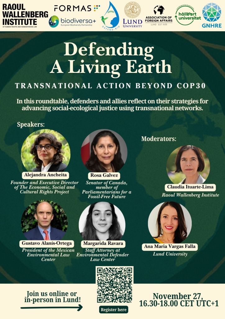 This event is a reflection on what does it mean to be an environmental defender today, when law can empower change, but also be weaponized to silence. Join us at the Lisbon Room (BSoG) or online.